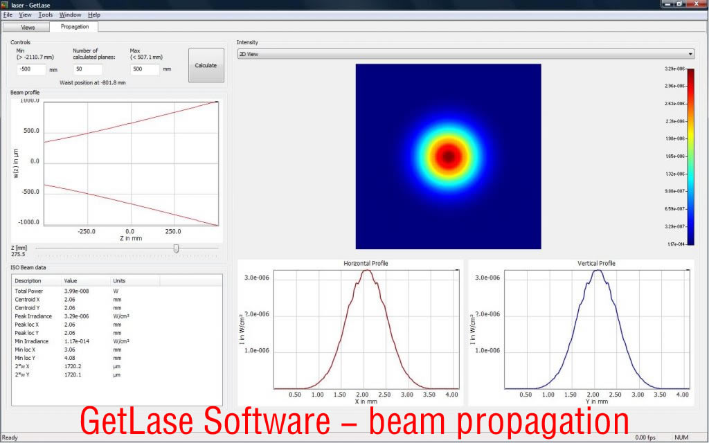 提供GetLase® 和GetWave® GUI软件,包括用于光束轮廓和波前分析的综合测量工具: